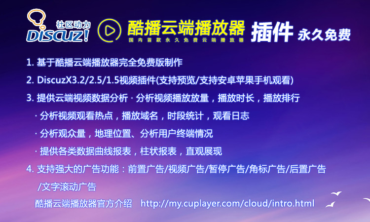 酷播云端播放器discuz免费视频插件(支持DiscuzX3.2/2.5/1.5)