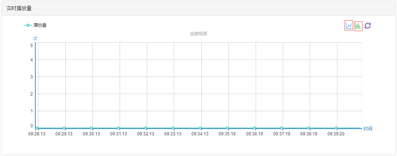 (1)实时播放量:提供折线图、柱形图的数据统计形式。如下图所示: