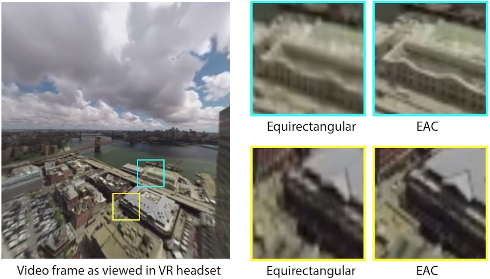 Google 最近 推出了一种新的投影技术——EAC(Equi-angular Cubemap,等角立方体),可以在一定程度上增加更多 VR 视频中画面的细节