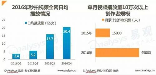 以秒拍的数据来看,秒拍视频日均播放量由2016年初的3.4亿增长到11月底的20.4亿,涨幅超过6倍。出现这样的增长,不只是秒拍,整个短视频行业同样如此。