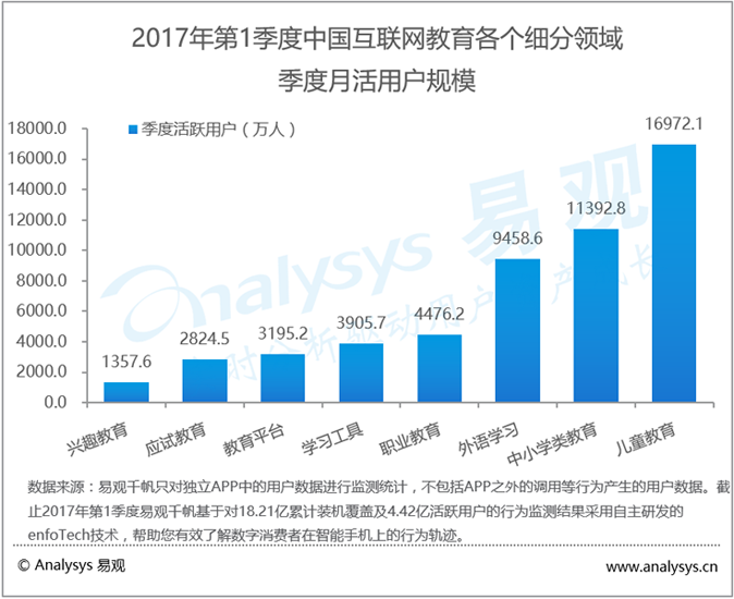 Analysys易观分析认为,2017年第1季度互联网教育市场表现主要呈现以下特征: